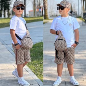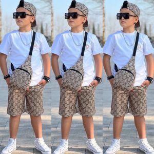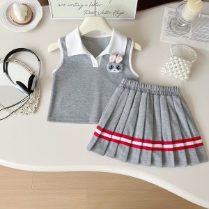 Ensemble fille 2 pièce jupe grise arrieur rouge